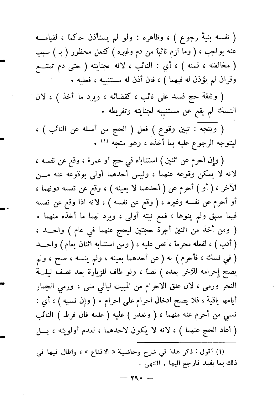 (نَفْسِهِ بِنِيَّةِ رُجُوعٍ) ، وَظَاهِرُهُ: وَلَوْ لَمْ يَسْتَأْذِنْ حَاكِمًا، لِقِيَامِهِ عَنْهُ بِوَاجِبٍ، (وَمَا لَزِمَ نَائِبًا مِنْ دَمٍ وَغَيْرِهِ) كَفِعْلِ مَحْظُورٍ (ب) سَبَبِ (مُخَالَفَتِهِ، فَمِنْهُ) ، أَيْ: النَّائِبِ، لِأَنَّهُ بِجِنَايَتِهِ (حَتَّى دَمِ تَمَتُّعٍ وَقِرَانٍ لَمْ يُؤْذَنْ لَهُ فِيهِمَا) ، فَإِنْ أَذِنَ لَهُ مُسْتَنِيبُهُ، فَعَلَيْهِ.