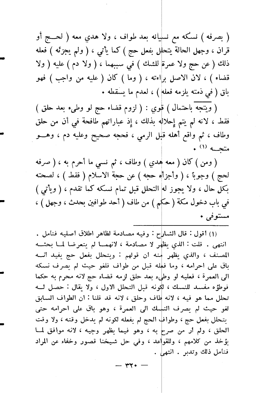 (بِصَرْفِهِ) نُسُكَهُ مَعَ نِسْيَانِهِ بَعْدَ طَوَافٍ، وَلَا هَدْيَ مَعَهُ (لِحَجٍّ أَوْ قِرَانٍ، وَجَهِلَ الْحَالَةَ يَتَحَلَّلُ بِفِعْلِ حَجٍّ) كَمَا يَأْتِي، (وَلَمْ يُجْزِئْهُ) فِعْلُهُ ذَلِكَ (عَنْ حَجٍّ وَلَا عُمْرَةٍ لِلشَّكِّ) فِي سَبَبِهِمَا، (وَلَا دَمَ) عَلَيْهِ (وَلَا قَضَاءَ) ، لِأَنَّ الْأَصْلَ بَرَاءَتُهُ، (وَمَا) كَانَ (عَلَيْهِ مِنْ وَاجِبٍ) فَهُوَ بَاقٍ (فِي ذِمَّتِهِ يَلْزَمُهُ فِعْلُهُ) ، لِعَدَمِ مَا يُسْقِطُهُ.