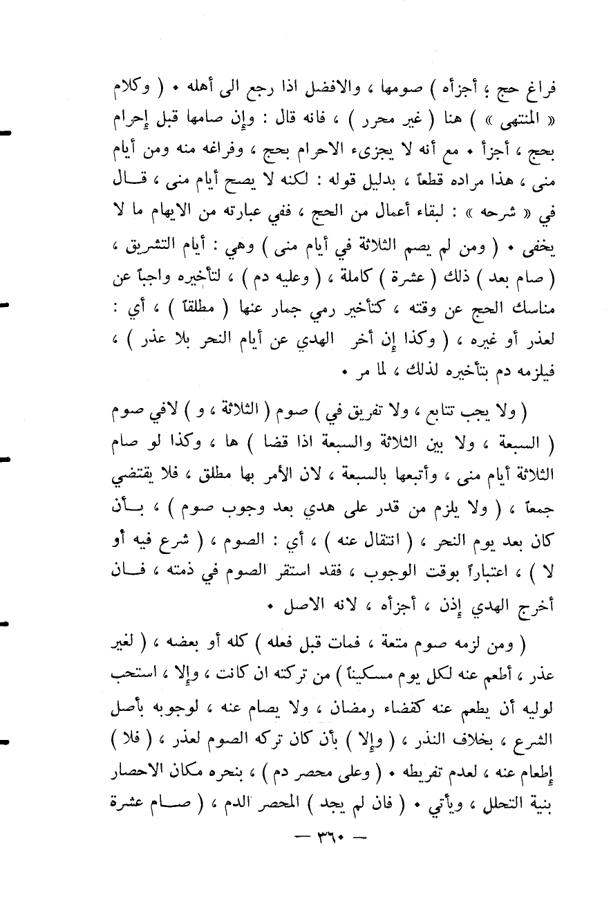 (وَمَنْ لَمْ يَصُمْ الثَّلَاثَةَ فِي أَيَّامِ مِنًى) وَهِيَ: أَيَّامُ التَّشْرِيقِ، (صَامَ بَعْدَ) ذَلِكَ (عَشَرَةً) كَامِلَةً، (وَعَلَيْهِ دَمٌ) ، لِتَأْخِيرِهِ وَاجِبًا عَنْ مَنَاسِكِ الْحَجِّ عَنْ وَقْتِهِ، كَتَأْخِيرِ رَمْيِ جِمَارٍ عَنْهَا (مُطْلَقًا) ، أَيْ: لِعُذْرٍ أَوْ غَيْرِهِ، (وَكَذَا إنْ أَخَّرَ الْهَدْيَ عَنْ أَيَّامِ النَّحْرِ بِلَا عُذْرٍ) ، فَيَلْزَمُهُ دَمٌ بِتَأْخِيرِهِ لِذَلِكَ، لِمَا مَرَّ.