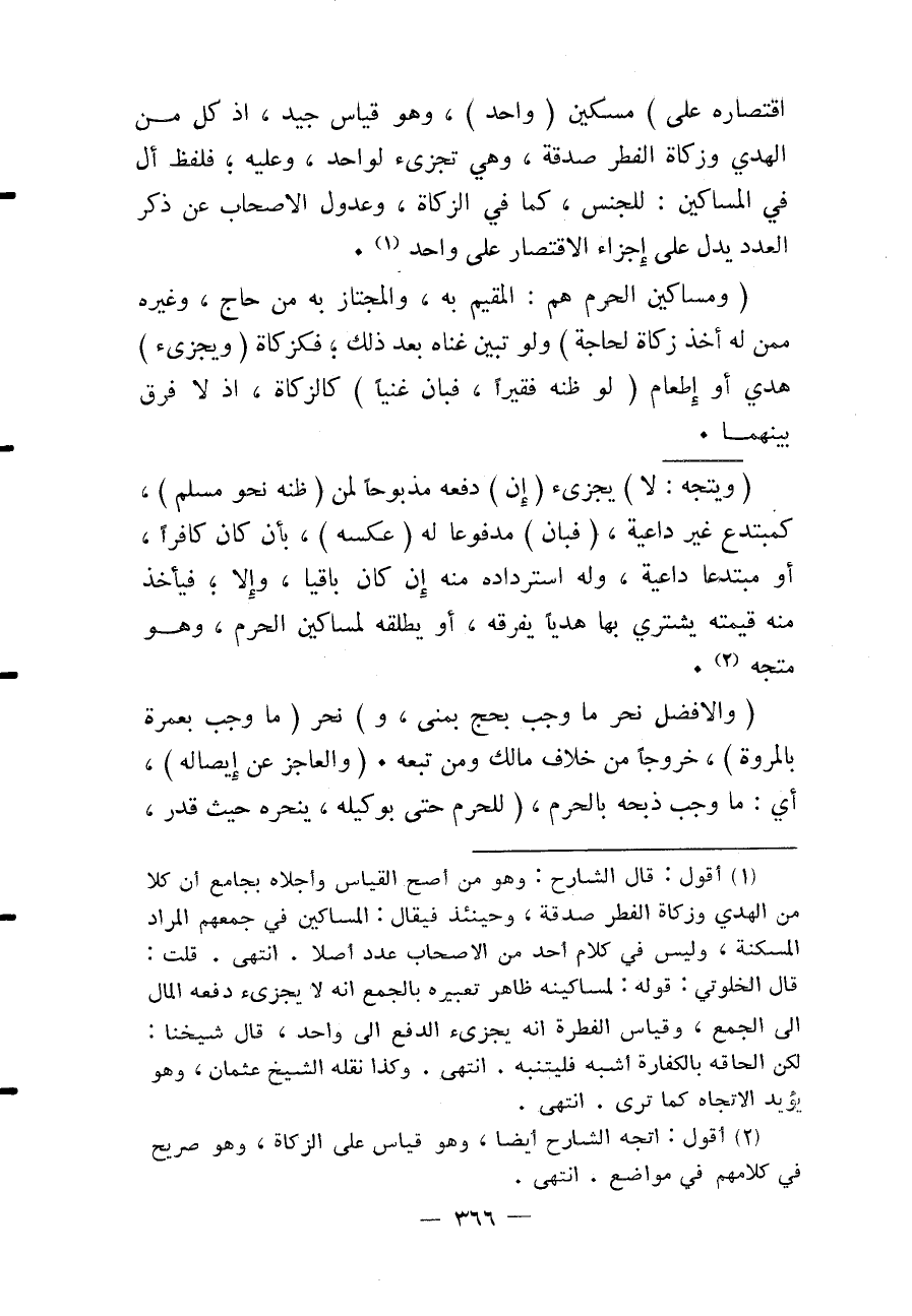 (وَمَسَاكِينُ الْحَرَمِ هُمْ: الْمُقِيمُ بِهِ، وَالْمُجْتَازُ بِهِ مِنْ حَاجٍّ، وَغَيْرِهِ مِمَّنْ لَهُ أَخْذُ زَكَاةٍ لِحَاجَةٍ) وَلَوْ تَبَيَّنَ غِنَاهُ بَعْدَ ذَلِكَ؛ فَكَزَكَاةٍ (وَيُجْزِئُ) هَدْيٌ أَوْ إطْعَامٌ (لَوْ ظَنَّهُ فَقِيرًا، فَبَانَ غَنِيًّا) كَالزَّكَاةِ، إذْ لَا فَرْقَ بَيْنَهُمَا.