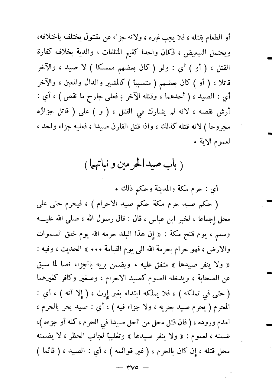 [بَابُ صَيْدِ الْحَرَمَيْنِ وَنَبَاتِهِمَا]