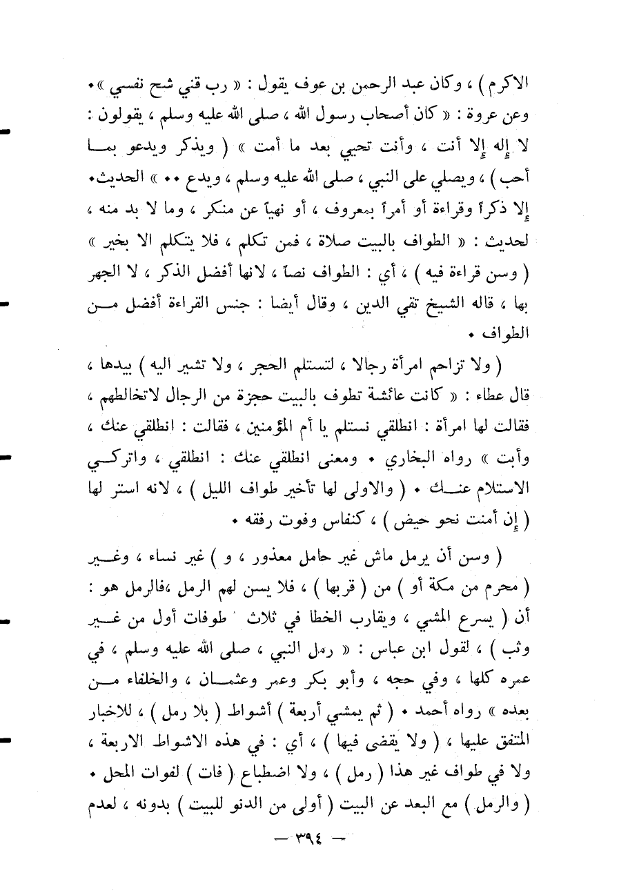 إلَّا ذِكْرًا وَقِرَاءَةً أَوْ أَمْرًا بِمَعْرُوفٍ، أَوْ نَهْيًا عَنْ مُنْكَرٍ وَمَا لَا بُدَّ مِنْهُ، لِحَدِيثِ: «الطَّوَافُ بِالْبَيْتِ صَلَاةٌ، فَمَنْ تَكَلَّمَ، فَلَا يَتَكَلَّمُ إلَّا بِخَيْرٍ»