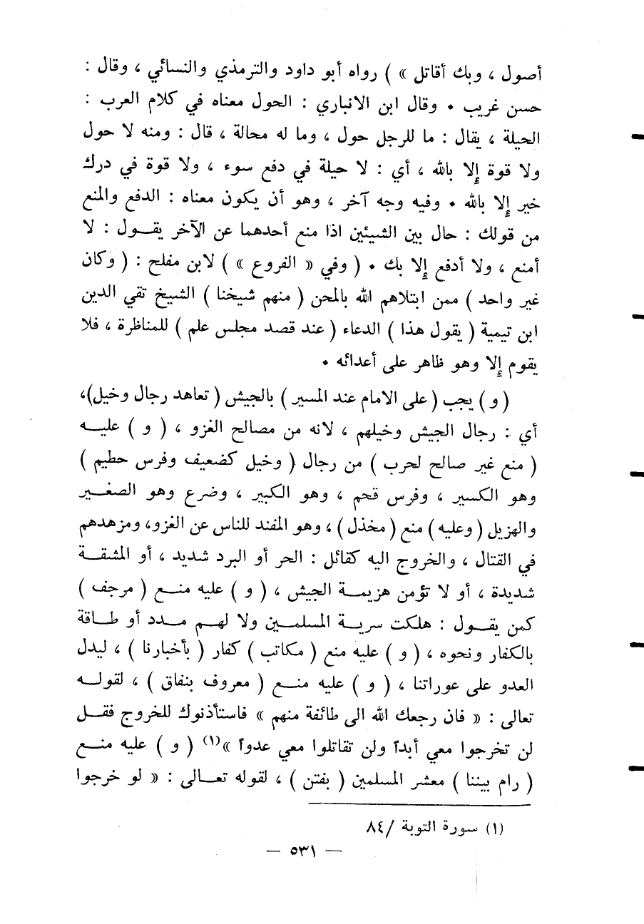 أَصُولُ، وَبِك أُقَاتِلُ» ) رَوَاهُ أَبُو دَاوُد وَالتِّرْمِذِيُّ وَالنَّسَائِيُّ، وَقَالَ: حَسَنٌ غَرِيبٌ وَقَالَ ابْنُ الْأَنْبَارِيِّ: الْحَوْلُ مَعْنَاهُ فِي كَلَامِ الْعَرَبِ: الْحِيلَةُ، يُقَالُ: مَا لِلرَّجُلِ حَوْلٌ، وَمَا لَهُ مَحَالَةٌ، قَالَ: وَمِنْهُ لَا حَوْلَ وَلَا قُوَّةَ إلَّا بِاَللَّهِ، أَيْ: لَا حِيلَةَ فِي دَفْعِ سُوءٍ، وَلَا قُوَّةَ فِي دَرَكِ خَيْرٍ إلَّا بِاَللَّهِ وَفِيهِ وَجْهٌ آخَرُ، وَهُوَ أَنْ يَكُونَ مَعْنَاهُ: الدَّفْعَ وَالْمَنْعَ مِنْ قَوْلِك: حَالَ بَيْنَ الشَّيْئَيْنِ إذَا مَنَعَ أَحَدَهُمَا عَنْ الْآخَرِ يَقُولُ: لَا أَمْنَعُ، وَلَا أَدْفَعُ إلَّا بِك.