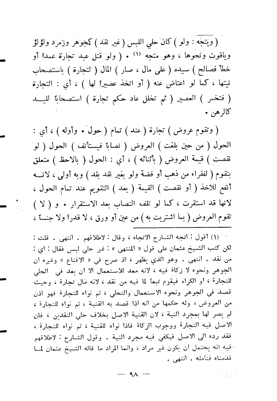 (وَتُقَوَّمُ عُرُوضُ) تِجَارَةٍ (عِنْدَ) تَمَامِ (حَوْلٍ. وَأَوَّلِهِ) ، أَيْ: الْحَوْلِ (مِنْ حِينِ بَلَغَتْ) الْعُرُوض (نِصَابًا فَيَسْتَأْنِفُ) الْحَوْلَ (لَوْ نَقَصَتْ) قِيمَةُ الْعُرُوضِ (بِأَثْنَائِهِ) ، أَيْ: الْحَوْلِ (بِالْأَحَظِّ) مُتَعَلِّقٌ بِتُقَوَّمُ (لِفُقَرَاءَ مِنْ ذَهَبٍ أَوْ فِضَّةٍ وَلَوْ بِغَيْرِ نَقْدِ بَلَدٍ) وَبِهِ أَوْلَى، لِأَنَّهُ أَنْفَعُ لِلْآخِذِ (أَوْ نَقَصَتْ) الْقِيمَةُ (بَعْدَ) التَّقْوِيمِ عِنْدَ تَمَامِ الْحَوْلِ، لِأَنَّهَا قَدْ اسْتَقَرَّتْ، كَمَا لَوْ تَلِفَ النِّصَابُ بَعْدَ الِاسْتِقْرَارِ.