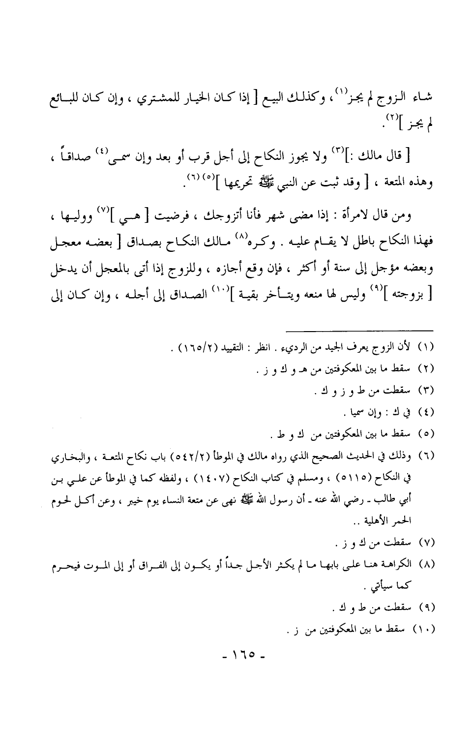 1371 -[قال مالك:] ولا يجوز النكاح إلى أجل قرب أو بعد وإن سمى صداقاً، وهذه المتعة، [وقد ثبت عن النبي ÷ تحريمها] . (¬1)