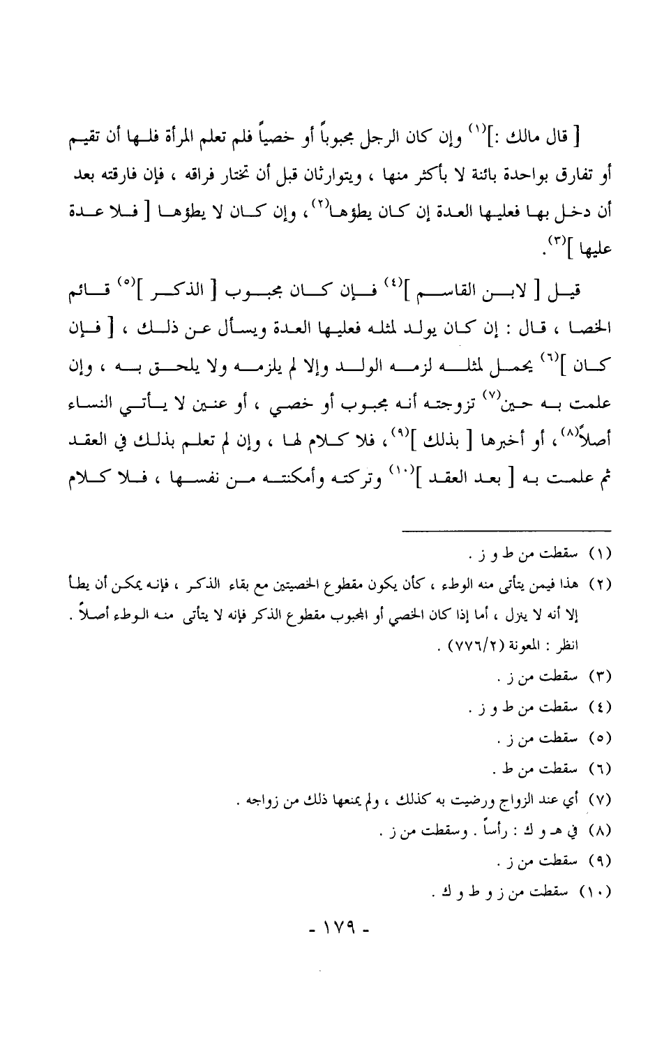 قيل [لابن القاسم] فإن كان مجبوب [الذكر] قائم الخصا، قال: إن كان يولد لمثله فعليها العدة ويسأل عن ذلك، [فإن كان] يحمل لمثله لزمه الولد وإلا لم يلزمه ولا يلحق به، وإن علمت به حين تزوجته أنه مجبوب أو خصي، أو عنين لا يأتي النساء أصلاً، أو أخبرها [بذلك] ، فلا كلام لها، وإن لم تعلم بذلك في العقد ثم علمت به [بعد العقد] وتركته وأمكنته من نفسها، فلا كلام