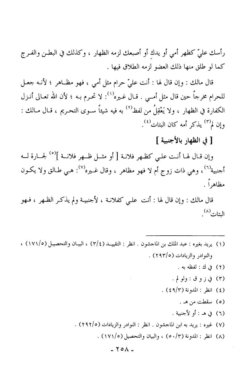 (¬1) انظر: المدونة الكبرى (6/50) ، ومواهب الجليل (4/112) ، والتاج والإكليل (4/119) ، والبيان والتحصيل (5/171) ، والنوادر والزيادات (5/293) .