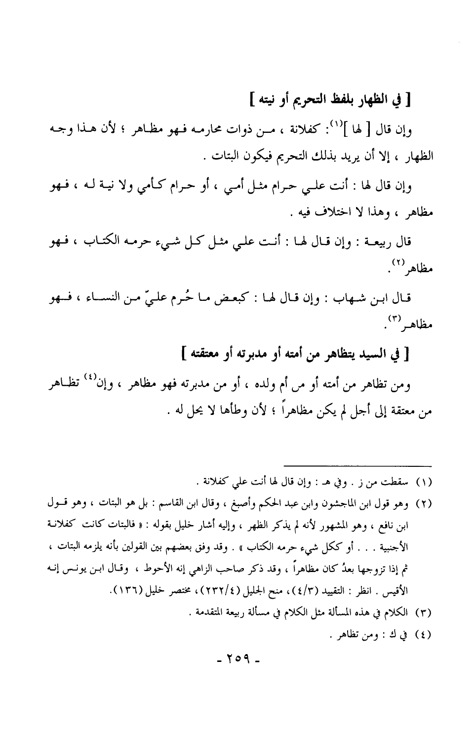 1543 - ومن تظاهر من أمته أو من أم ولده، أو من مدبرته فهو مظاهر، وإن تظاهر من معتقة إلى أجل لم يكن مظاهراً، لأن وطأها لا يحل له.