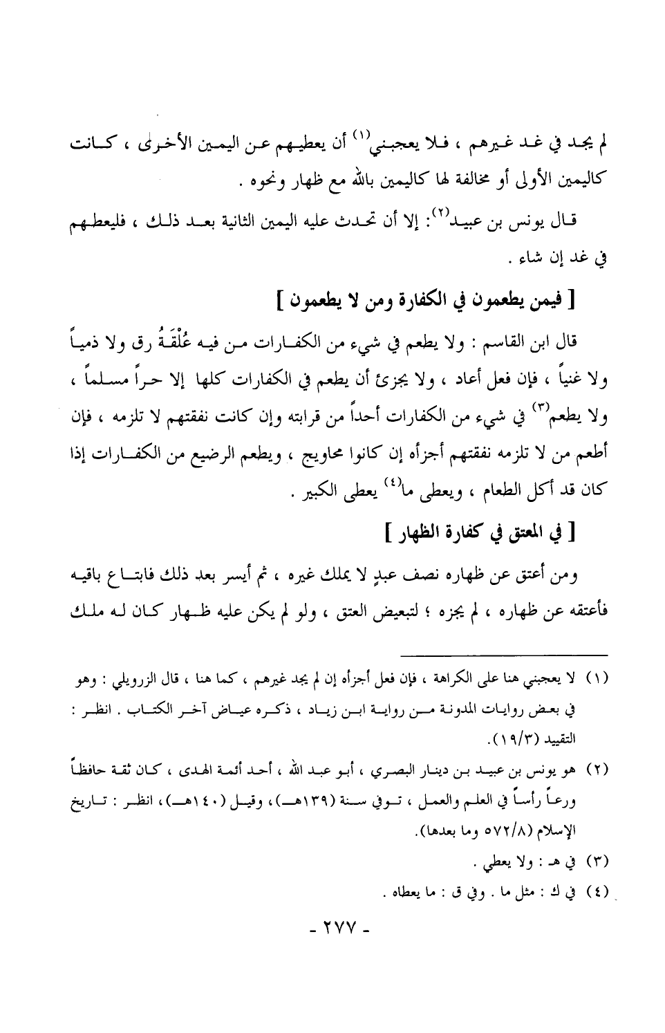 لم يجد في غد غيرهم، فلا يعجبني أن يعطيهم عن اليمين الأخرى، كانت كاليمين الأول أو مخالفة لها كاليمين بالله مع ظهار ونحوه.