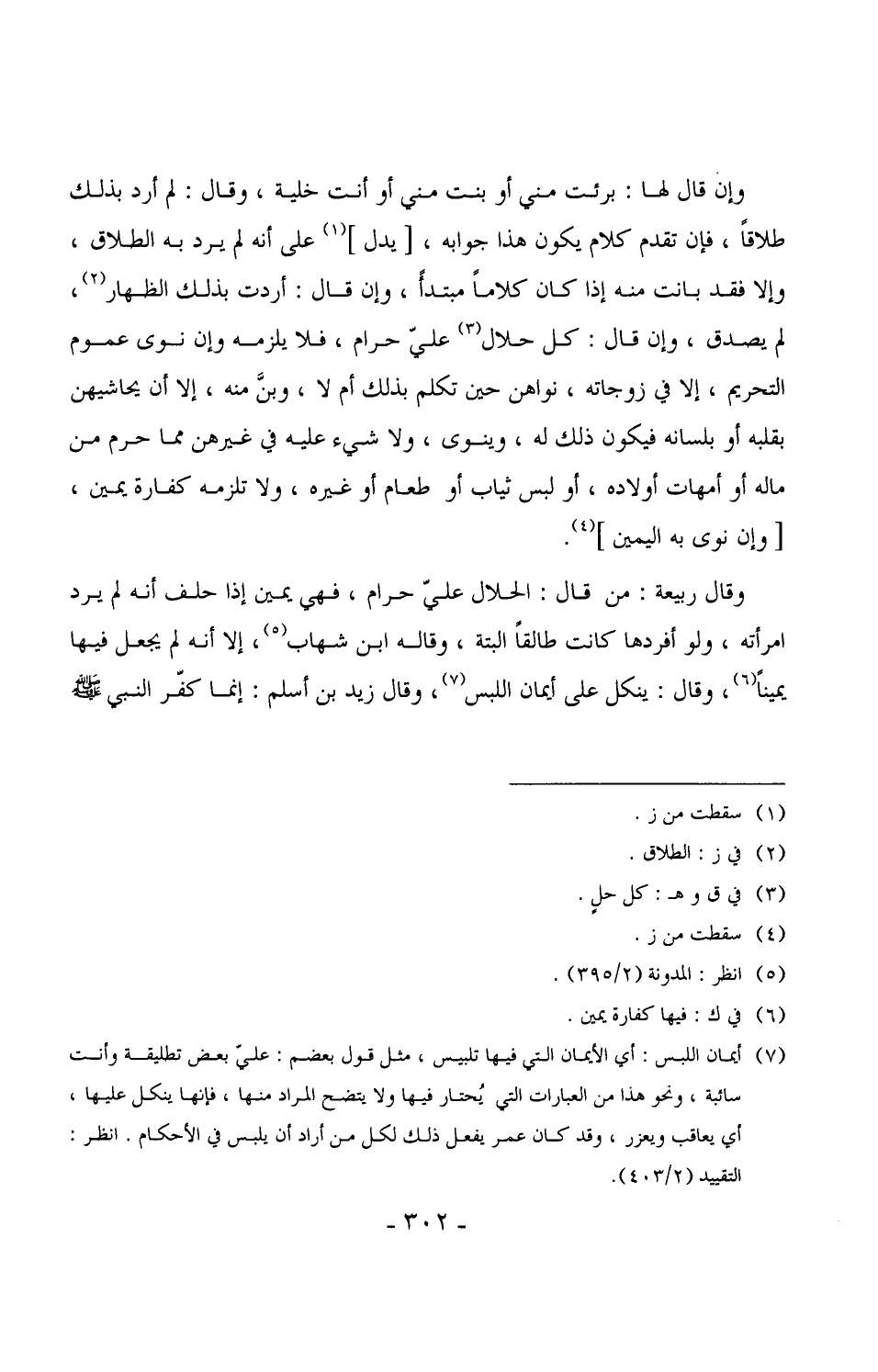 وقال ربيعة: من قال: الحلال علي حرام، فهي يمين إذا حلف أنه لم يرد امرأته، ولو أفردها كانت طالقاً البتة، وقاله ابن شهاب، إلا أنه لم يجعل فيها يميناً، وقال: ينكل على أيمان اللبس، وقال زيد بن أسلم: إنما كفّر النبي ÷
