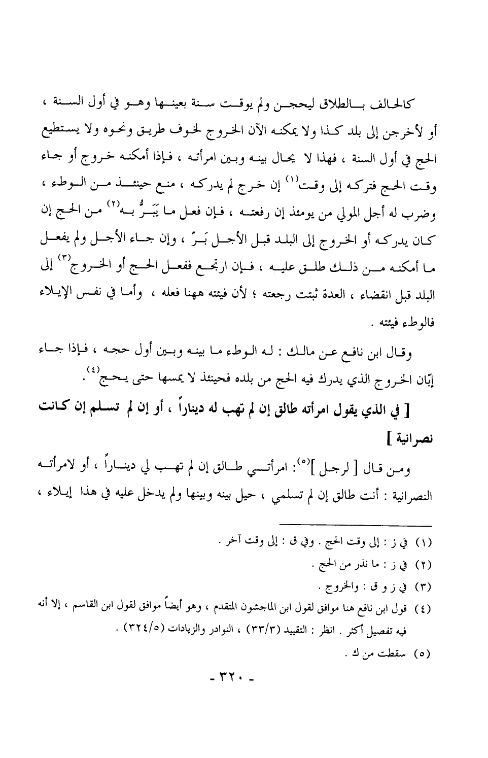 ومن قال [لرجل] : امرأتي طالق إن لم تهب لي ديناراً، أو لامرأته النصرانية: أنت طالق إن لم تسلمي، حيل بينه وبينها ولم يدخل عليه في هذا إيلاء،
