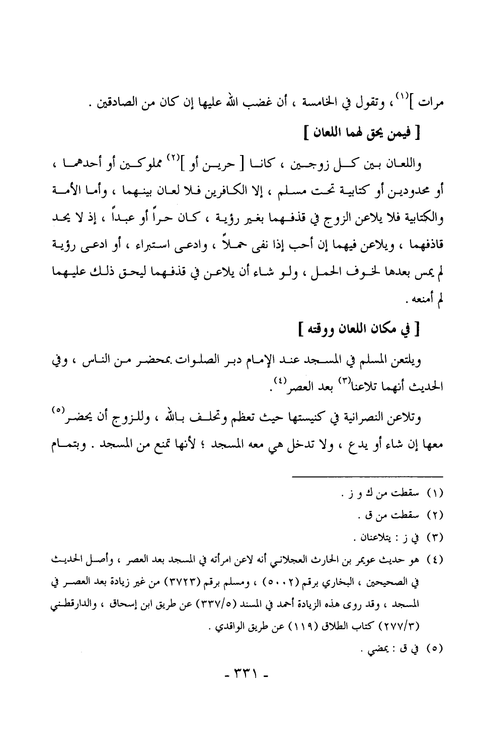 1666 - ويلتعن المسلم في المسجد عند الإمام دبر الصلوات بمحضر من الناس، وفي الحديث أنهما تلاعنا بعد العصر. (¬2)