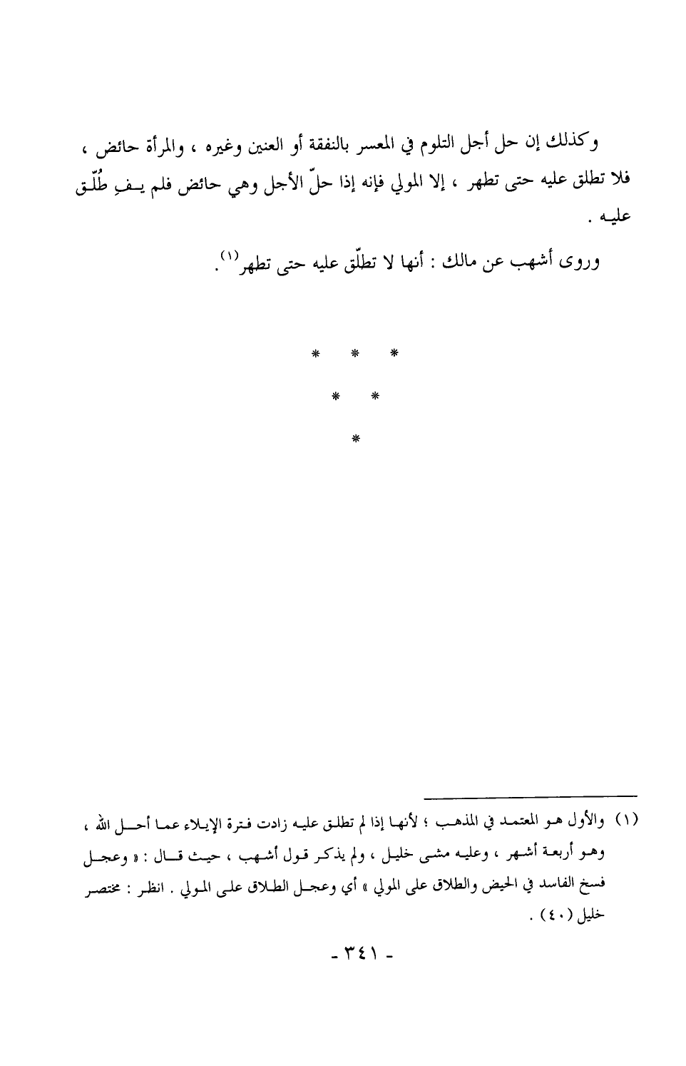 (¬1) انظر: التاج والإكليل (4/41) ، والشرح الكبير (2/364) ، ومواهب الجليل (4/41) ، ومنح الجليل (4/272) .