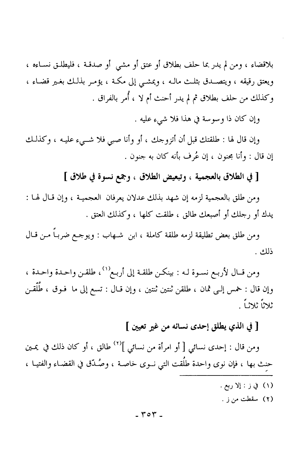 1711 - وإن قال لها: طلقتك قبل أن أتزوجك، أو وأنا صبي فلا شيء عليه، وكذلك إن قال: وأنا مجنون، إن عُرف بأنه كان به جنون.
