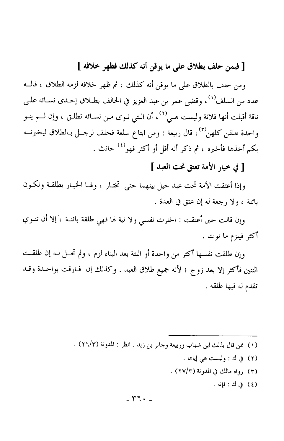 1730 - ومن حلف بالطلاق على ما يوقن أنه كذلك، ثم ظهر خلافه لزمه الطلاق، قاله عدد من السلف، وقضى عمر بن عبد العزيز في الحالف بطلاق إحدى نسائه على ناقة أقبلت أنها فلانة وليست هي، أن التي نوى من نسائه تطلق، وإن لم ينو واحدة طلقن كلهن، قال ربيعة: ومن ابتاع سلعة فحلف لرجل بالطلاق ليخبرنه بكم أخذها فأخبره، ثم ذكر أنه أقل أو أكثر فهو حانث.