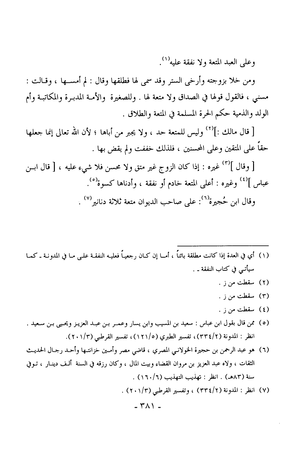 وقال ابن حُجيرة: على صاحب الديوان متعة ثلاثة دنانير.