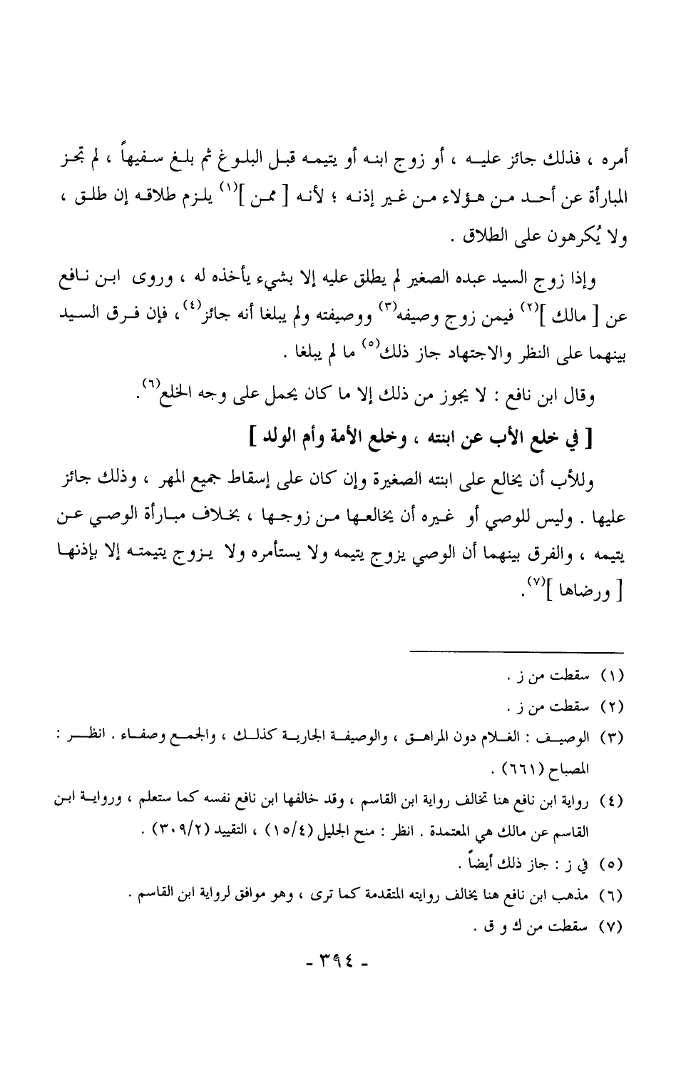 (¬1) انظر: منح الجليل (4/15) ، والتقييد (2/309) ، ومواهب الجليل (4/20) ، وبداية المجتهد (2/51) ، والمدونة (5/350) .