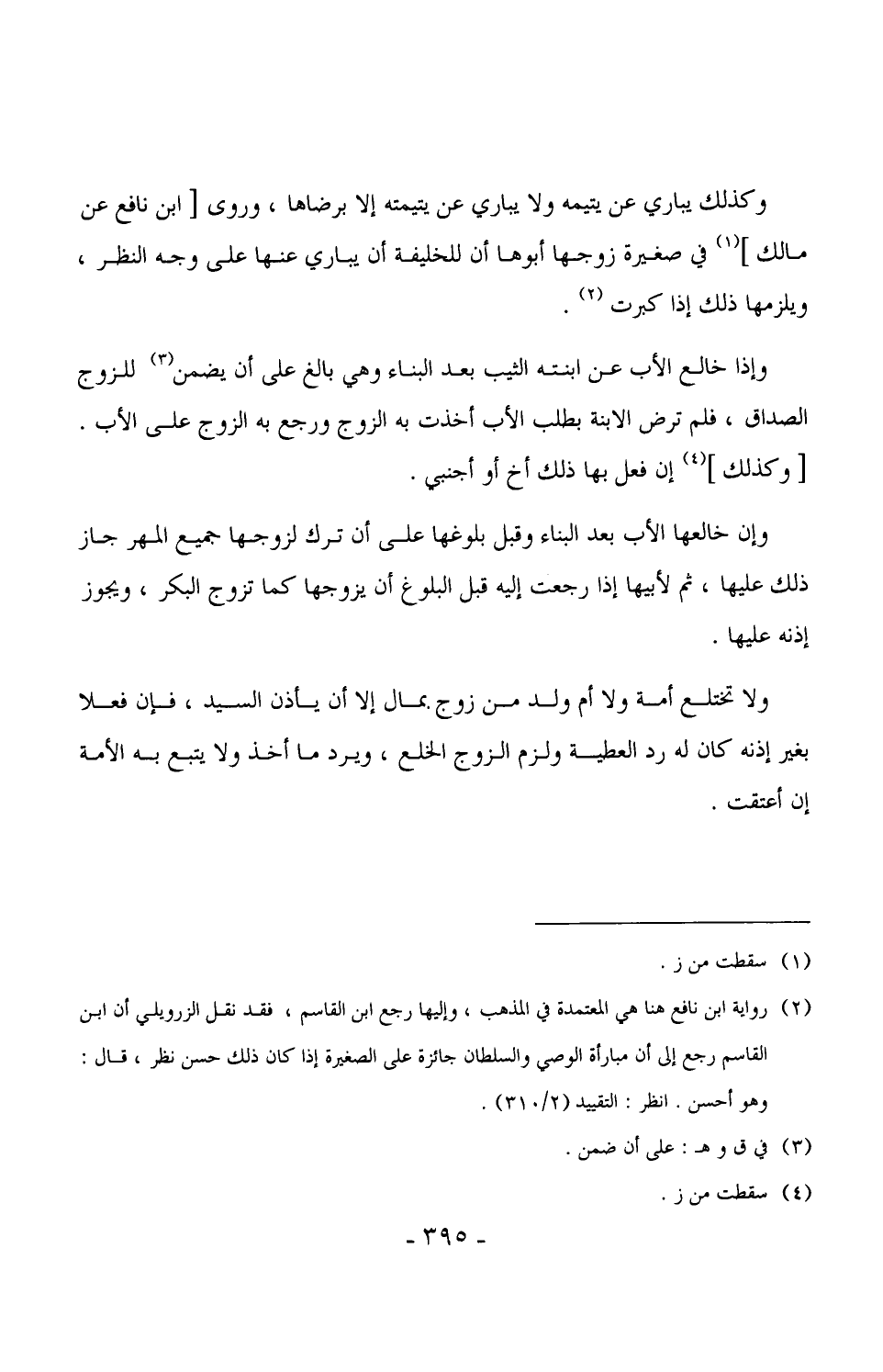 1810 - ولا تختلع أمة ولا أم ولد من زوج بمال إلا أن يأذن السيد، فإن فعلا بغير إذنه كان له رد العطية ولزم الزوج الخلع، ويرد ما أخذ ولا يتبع به الأمة إن أعتقت.