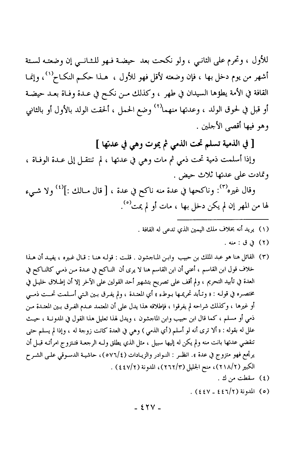 1865 - وإذا أسلمت ذمية تحت ذمي ثم مات وهي في عدتها، لم تنتقل إلى عدة الوفاة وتمادت على عدتها ثلاث حيض.