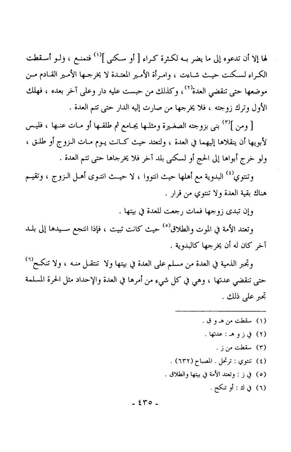 1883 - وتعتد الأمة في الموت والطلاق حيث كانت تبيت، فإذا انتجع سيدها إلى بلد آخر كان له أن يخرجها كالبدوية.