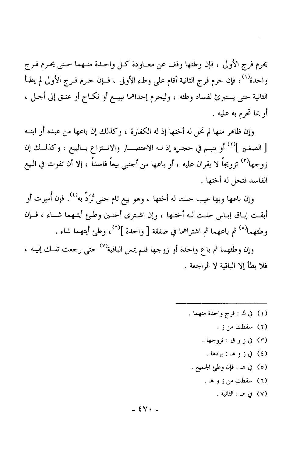 وإن ظاهر منها لم تحل له أختها إذ له الكفارة، وكذلك إن باعها من عبده أو ابنه [الصغير] أو يتيم في حجره إذ له الاعتصار والانتزاع بالبيع، وكذلك إن زوجها تزويجاً لا يقران عليه، أو باعها من أجنبي بيعاً فاسداً، إلا أن تفوت في البيع الفاسد فتحل له أختها.