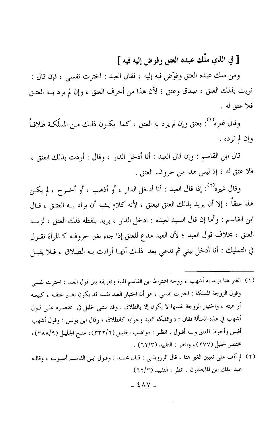 1983 - قال ابن القاسم: وإن قال العبد: أنا أدخل الدار، وقال: أدرت بذلك العتق، فلا عتق له، إذ ليس هذا من حروف العتق.