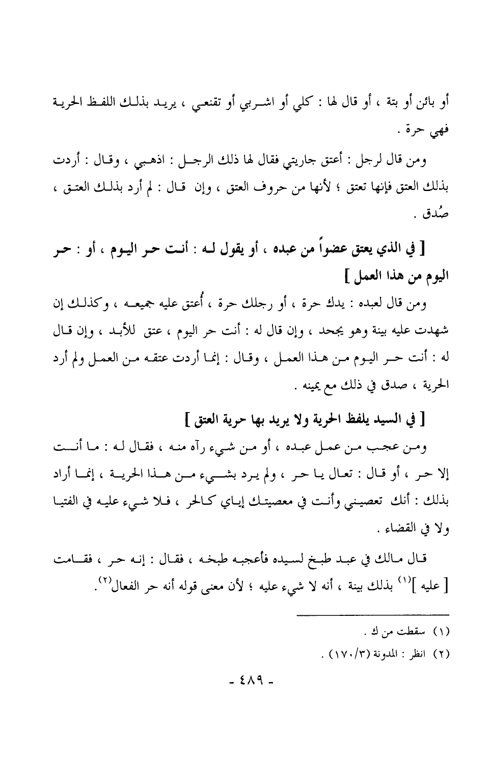 (¬1) انظر: المدونة الكبرى (7/169) ، والتاج والإكليل (6/332) .