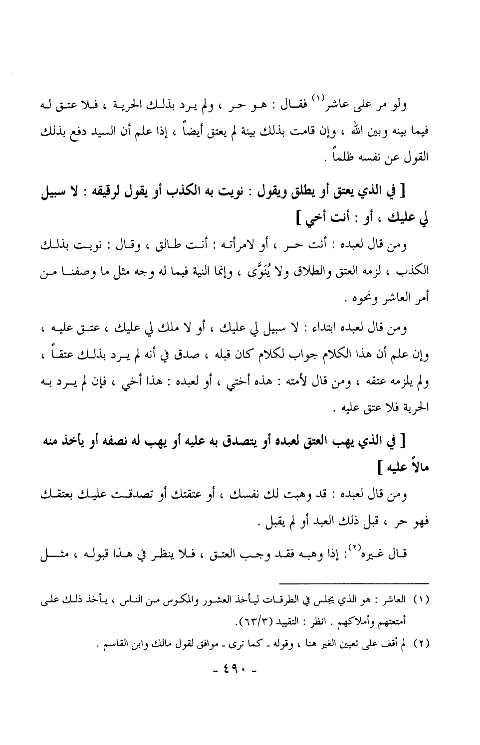 (¬1) انظر: مواهب الجليل (5/245، 246) ، والتاج والإكليل (5/245) ، وحاشية الدسوقي (3/418) .