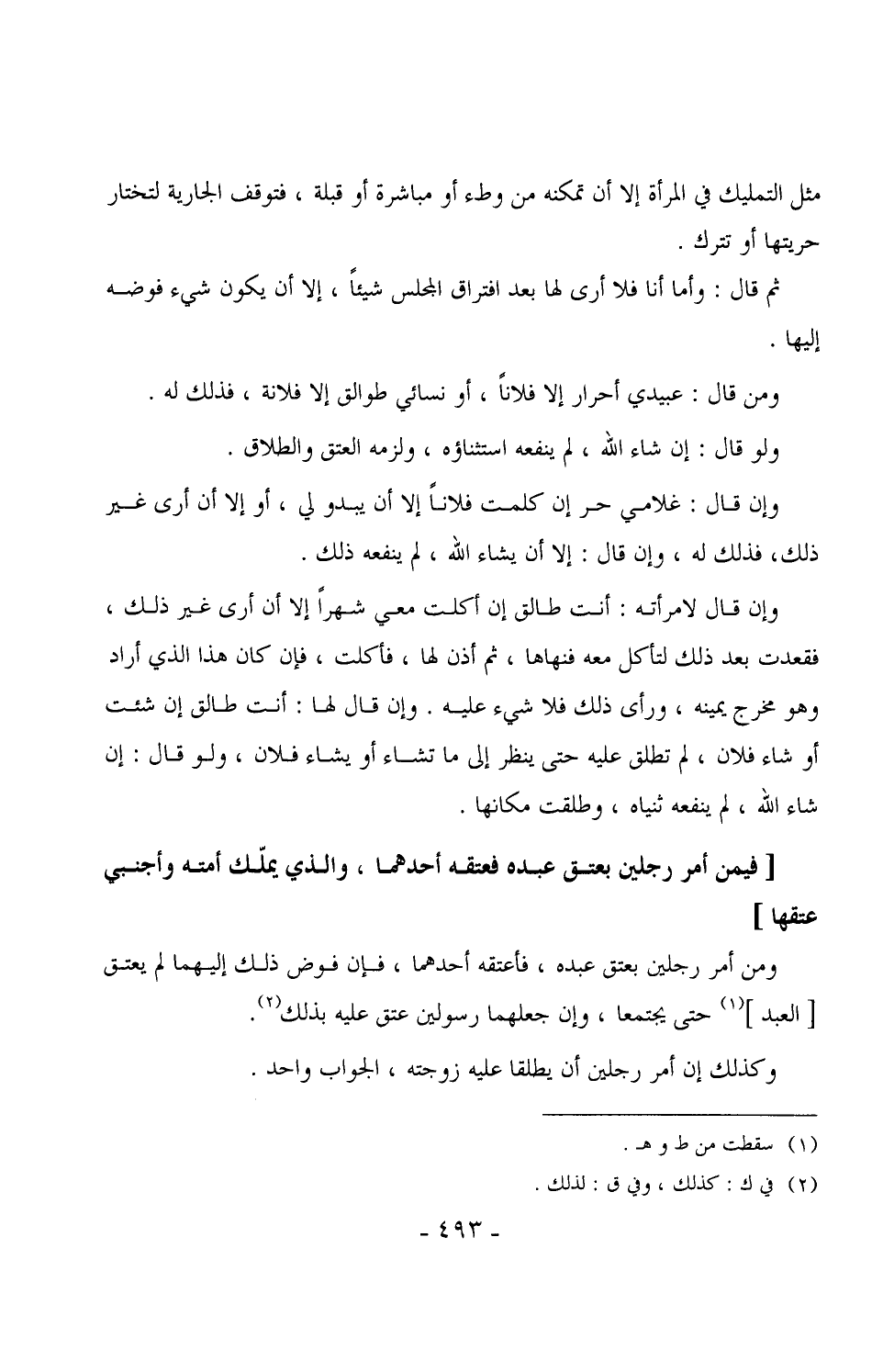 1996 - ومن أمر رجلين بعتق عبده، فأعتقه أحدهما، فإن فوض ذلك إليهما لم يعتق [العبد] حتى يجتمعا، وإن جعلهما رسولين عتق عليه بذلك.