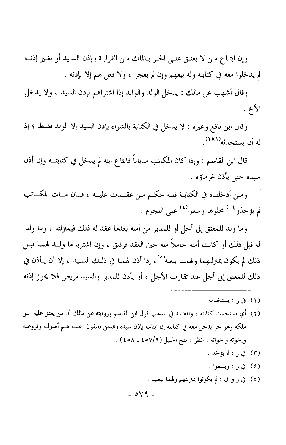 وقال ابن نافع وغيره: لا يدخل في الكتابة بالشراء بإذن السيد إلا الولد فقط، إذ له أن يستحدثه.