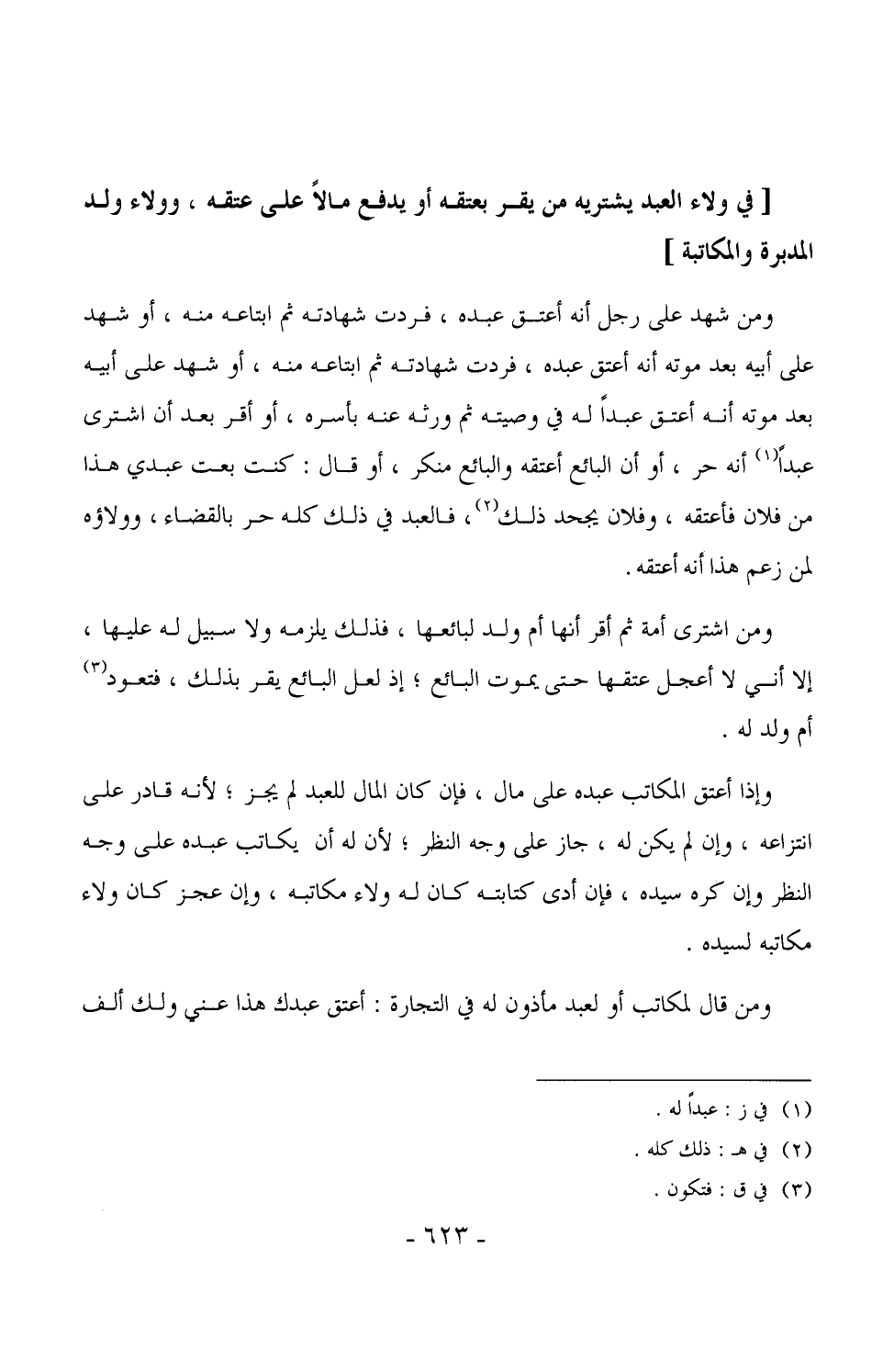 2207 - وإذا أعتق المكاتب عبده على مال، فإن كان المال للعبد لم يجز، لأنه قادر على انتزاعه، وإن لم يكن له، جاز على وجه النظر، لأن له أن يكاتب عبده على وجه النظر وإن كره سيده، فإن أدى كتابته كان له ولاء مكاتبه، وإن عجز كان ولاء مكاتبه لسيده.