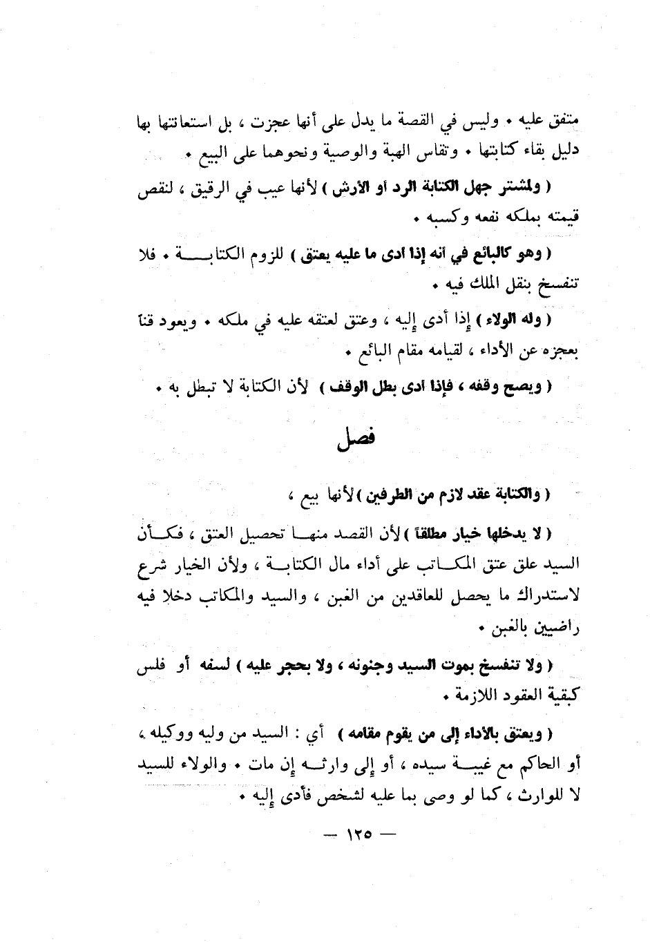 "وله الولاء" إذا أدى إليه، وعتق لعتقه عليه في ملكه. ويعود قناً بعجزه عن الأداء، لقيامه مقام البائع.