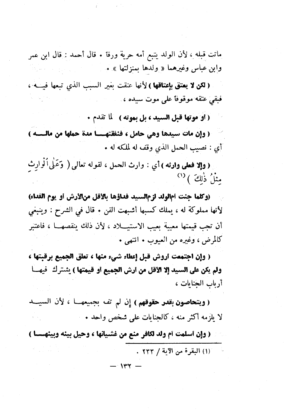 "وإن مات سيدها وهي حامل، فنفقتها مده حملها من ماله" أي: نصيب الحمل الذي وقف له لملكه له.