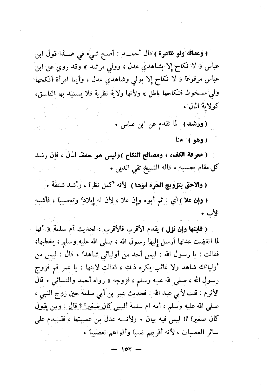 "وعدالة ولو ظاهرة" قال أحمد: أصح شيء في هذا قول ابن عباس: لا نكاح إلا بشاهدي عدل، وولي مرشد. وقد روى عن ابن عباس مرفوعاً: "لا نكاح إلا بولي وشاهدي عدل، وأيما امرأة أنكحها ولي مسخوط فنكاحها باطل". ولأنها ولاية نظرية فلا يستبد بها الفاسق، كولاية المال.