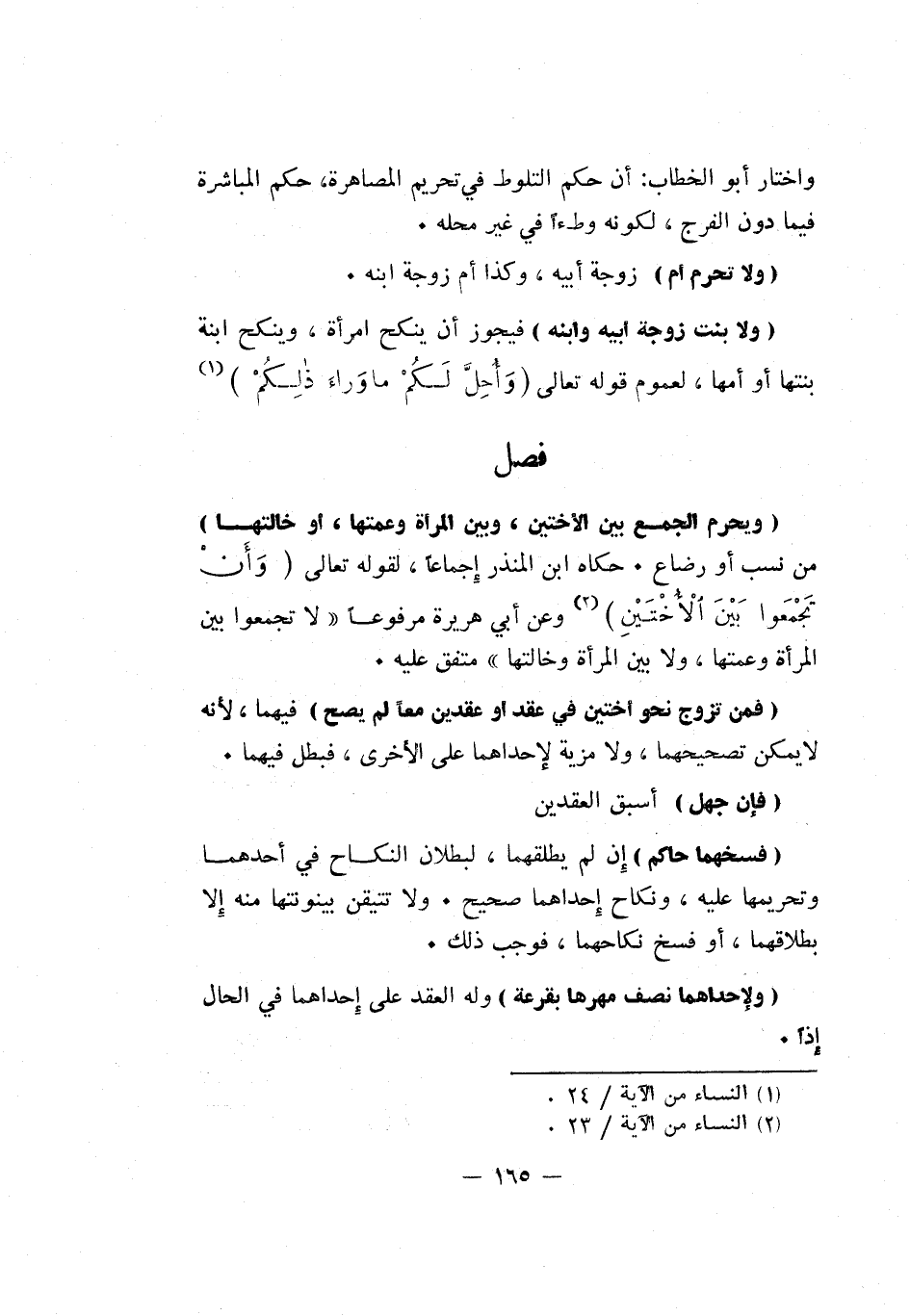 فصل ويحرم الجمع بين الأختين وبين المرأة وعمتها أو خالتها: