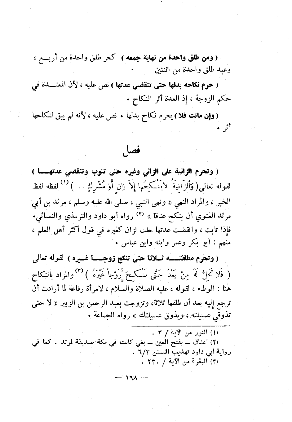 فصل وتحرم الزانية على الزاني وغيره حتى تتوب وتنقضي عدتها: