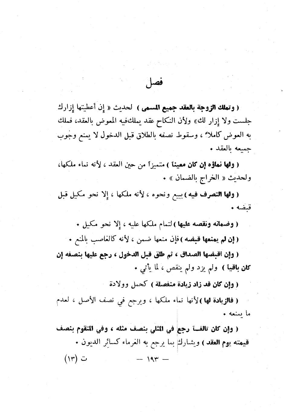 فصل وتملك الزوجة بالعقد جميع المسمى: