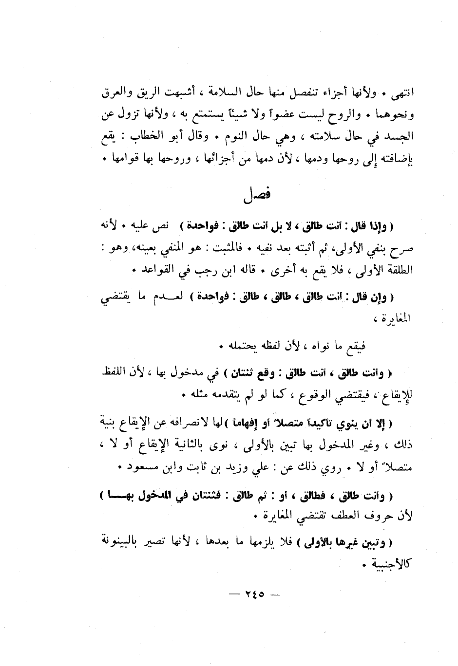 فصل وإذا قال أنت طالق لا بل أنت طالق فواحدة: