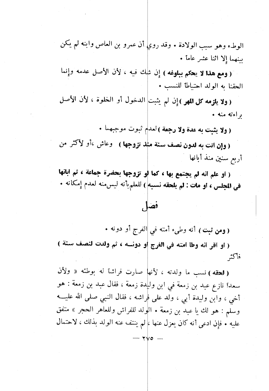 الوطء وهو سبب الولادة. وقد روي أن عمرو بن العاص وابنه لم يكن بينهما إلا اثنا عشر عاما.