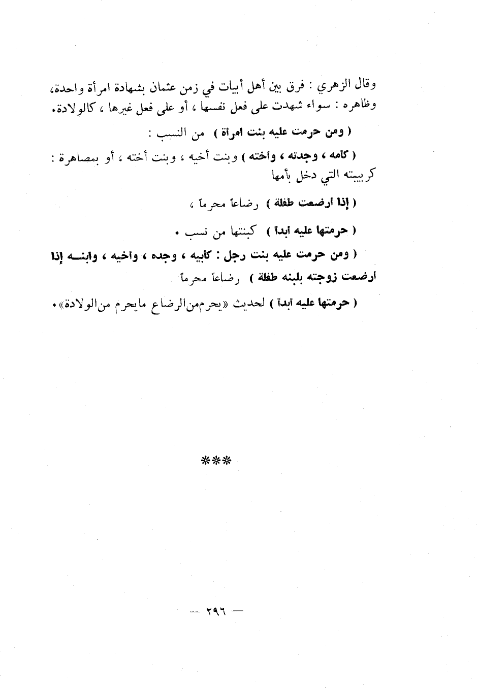 "ومن حرمت عليه بنت رجل: كأبيه، وجده، وأخيه، وابنه إذا أرضعت زوجته بلبنه طفلة" رضاعا محرما.