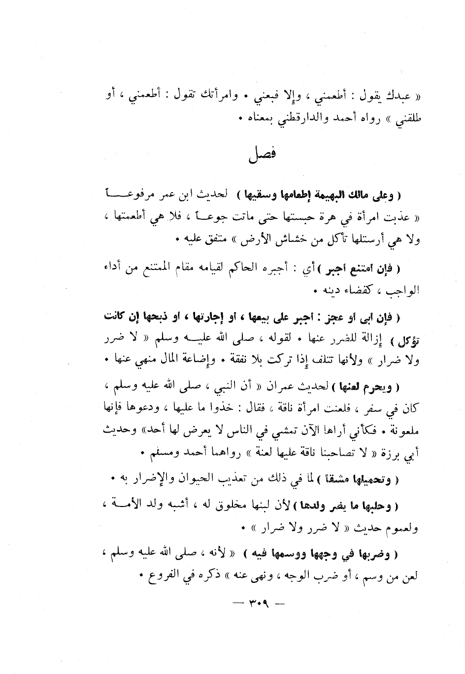 فصل وعلى مالك البهيمة إطعامها وسقيها: