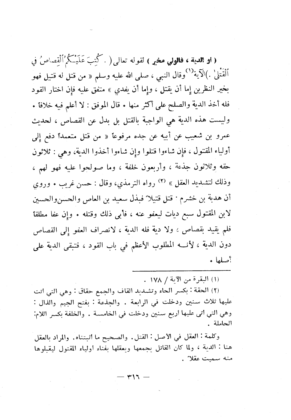 وكلمة: العقل في الأصل: القتل. والصحيح ما أثبتناه. والمراد بالعقل هنا: الدنة، ولما كان القاتل يجمعها ويعقلها بفناء أولياء المقتول.... منه سميت عقلا.