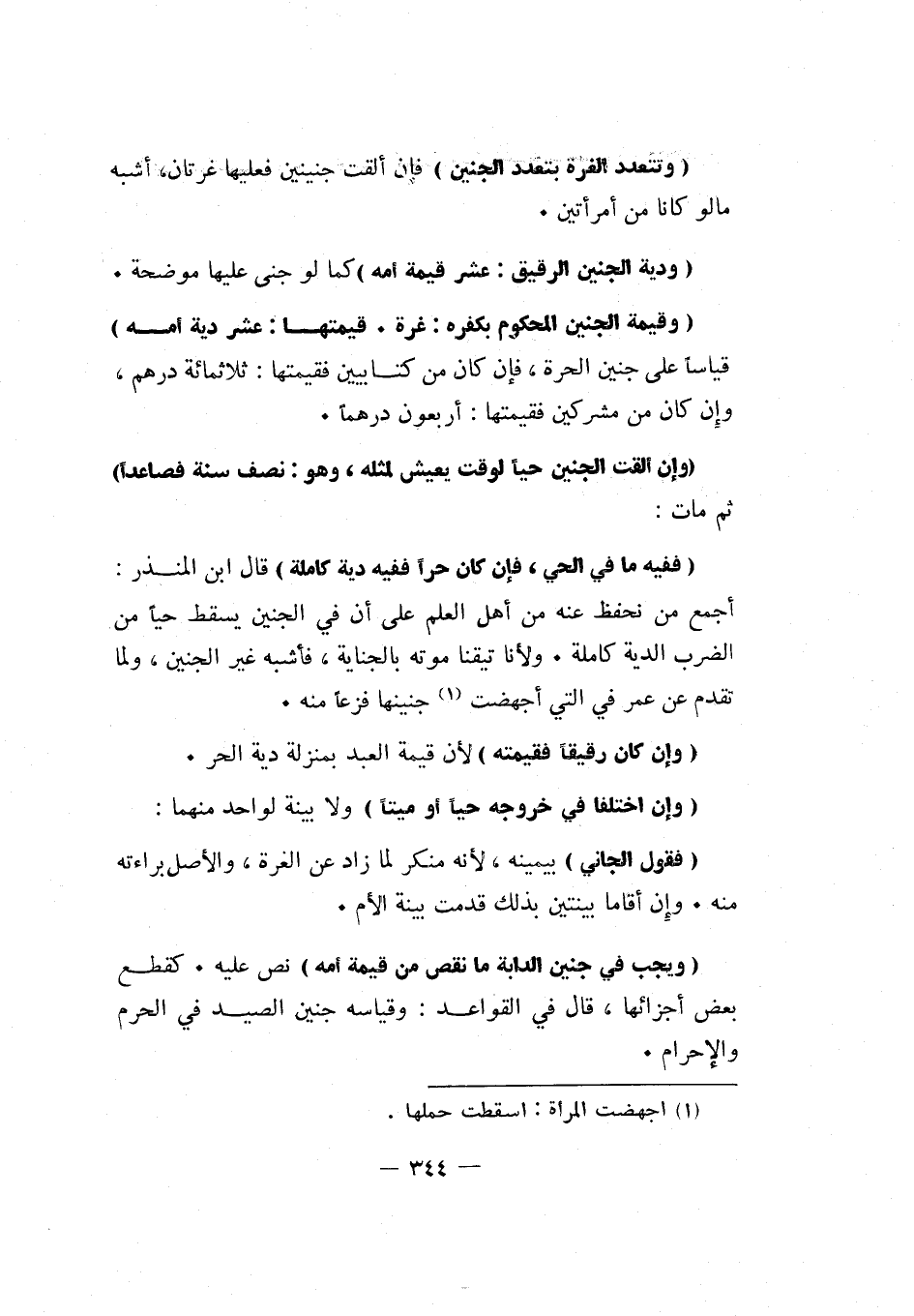 "ودية الجنين الرقيق: عشر قيمة أمه" كما لو جنى عليها موضحة.