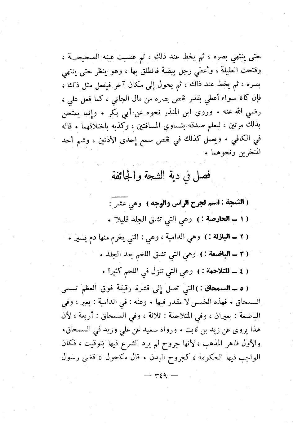"الشجة: اسم لجرح الرأس والوجه" وهي عشر: