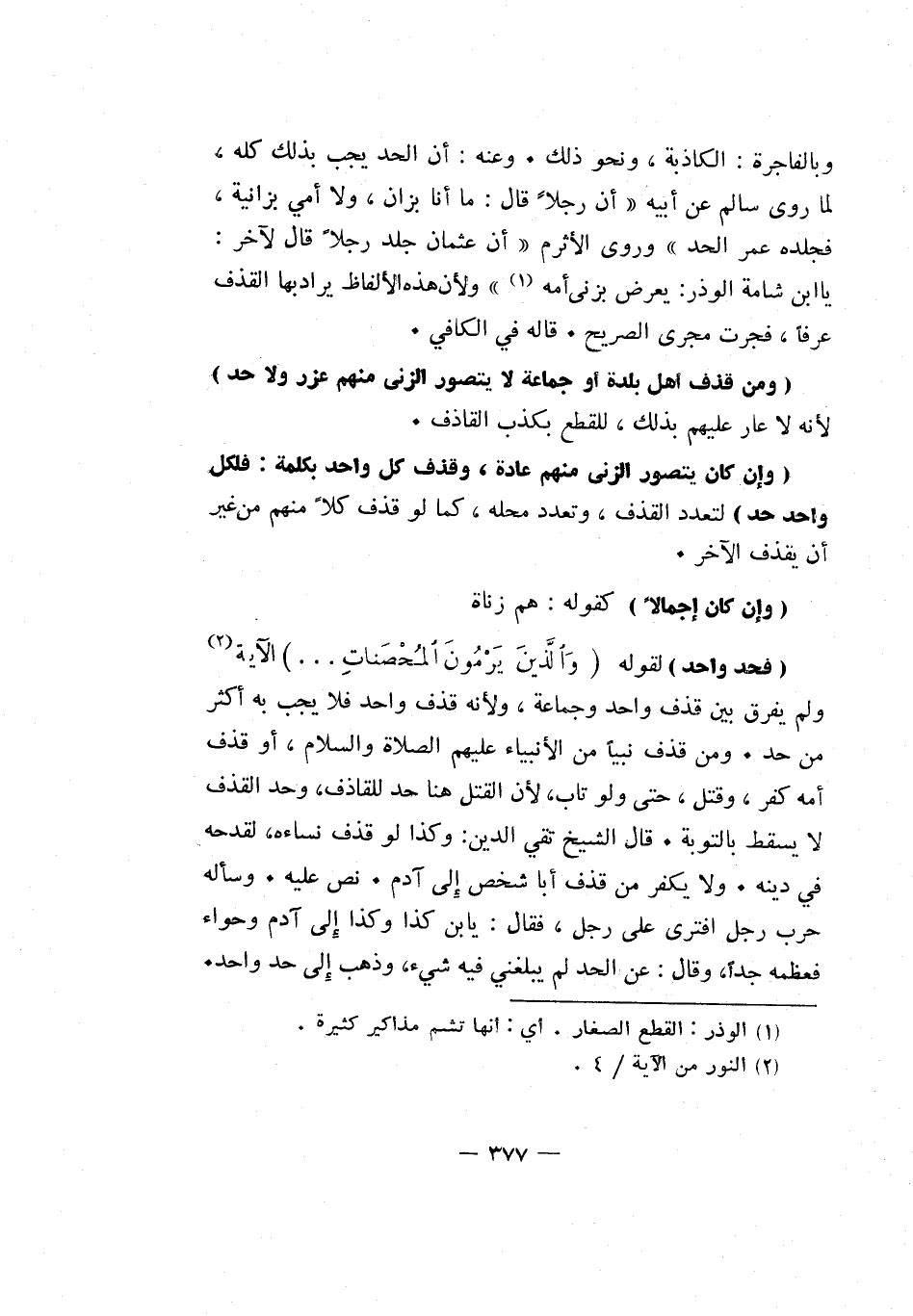 "ومن قذف أهل بلدة أو جماعة لا يتصور الزنى منهم عزر ولا حد" لأنه لا عار عليهم بذلك، للقطع بكذب القاذف.