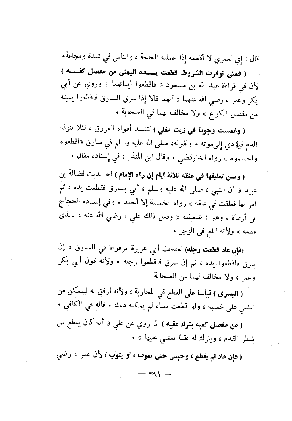 "وسن تعليقها في عنقه ثلاثة أيام إن رآه الإمام" لحديث فضالة بن عبيد أن النبي صلى الله عليه وسلم أتي بسارق فقطعت يده، ثم أمر بها فعلقت في عنقه رواه الخمسة إلا أحمد. وفي إسناده الحجاج بن أرطاة، وهو: ضعيف وفعل ذلك علي رضي الله عنه، بالذي قطعه ولأنه أبلغ في الزجر.