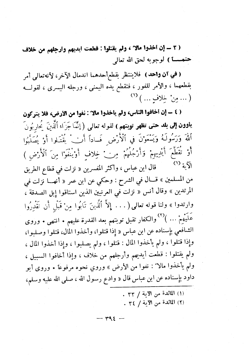 "3- إن أخذوا مالا، ولم يقتلوا: قطعت أيديهم وأرجلهم من خلاف حتما" لوجوبه لحق الله تعالى