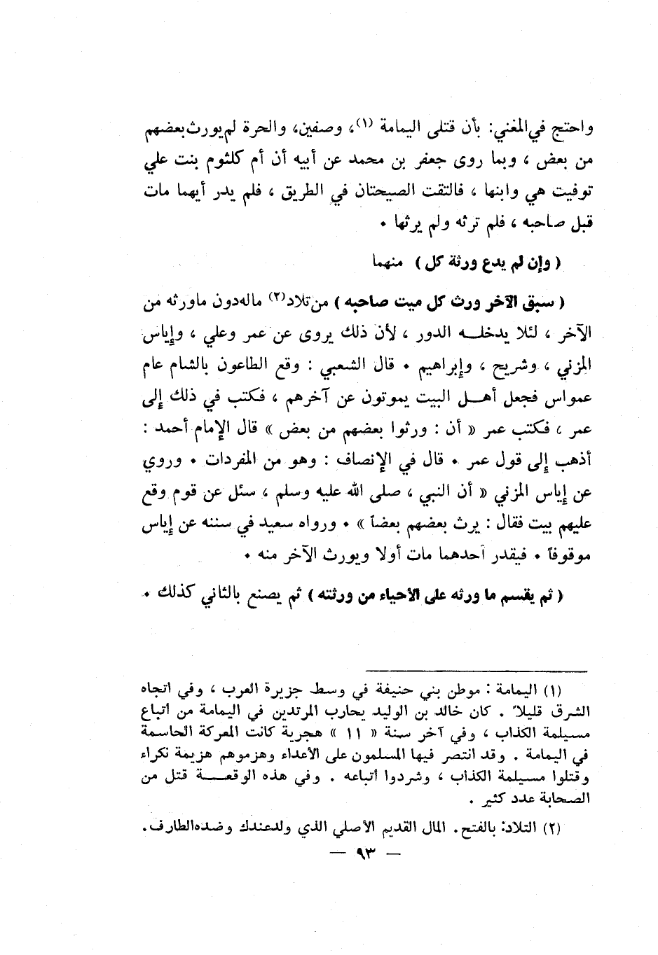 واحتج في المغني: بأن قتلى اليمامة1، وصفين، والحرة لم يورث بعضهم من بعض، وبما روى جعفر بن محمد عن أبيه أن أم كلثوم بنت علي توفيت هي وابنها، فالتقت الصيحتان في الطريق، فلم يدر أيهما مات قبل صاحبه، فلم ترثه ولم يرثها.