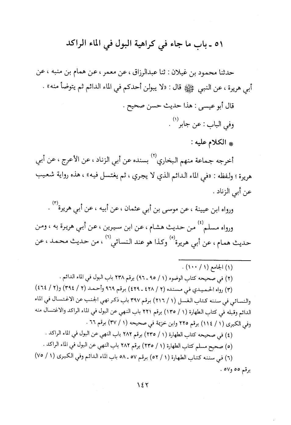 (¬5) صحيح مسلم كتاب الطهارة (1/ 235) برقم 282 باب النهي عن البول في الماء الراكد.