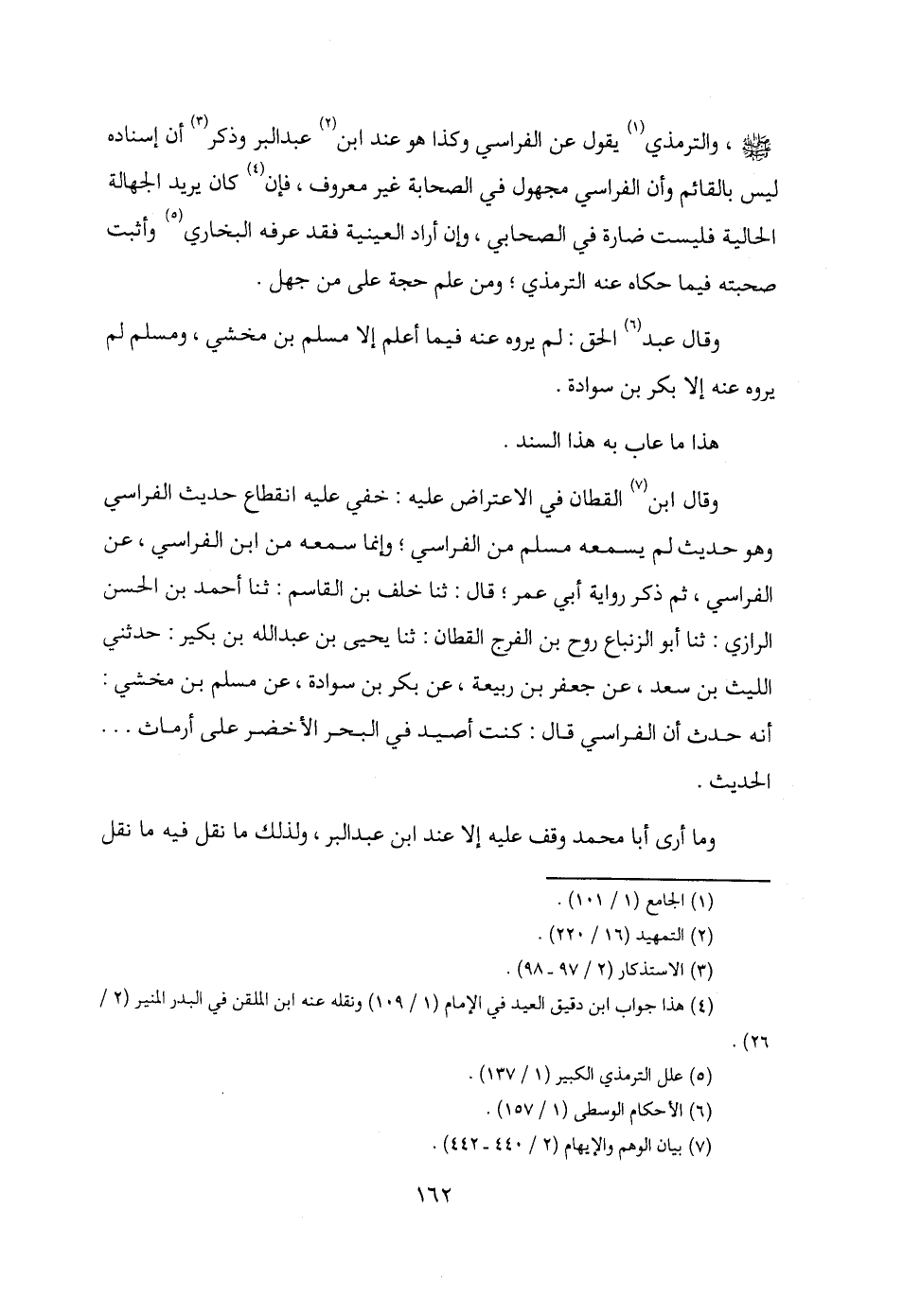 - صلى الله عليه وسلم -، والترمذي (¬1) يقول عن الفراسي وكذا هو عند ابن (¬2) عبد البر وذكر (¬3) أن إسناده ليس بالقائم وأن الفراسي مجهول في الصحابة غير معروف، فإن (¬4) كان يريد الجهالة الحالية فليست ضارة في الصحابي، وإن أراد العينية فقد عرفه البخاري (¬5) وأثبت صحبته فيما حكاه عنه الترمذي؛ ومن علم حجة على من جهل.